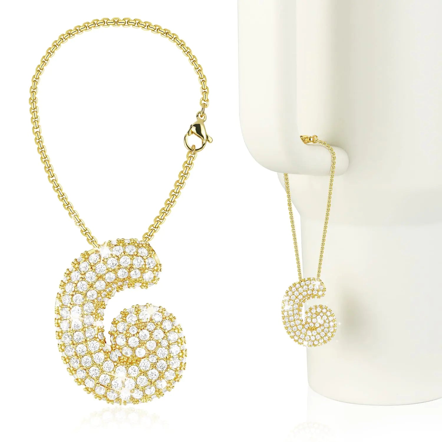 ✨【Bling Bubble Letters】:Bubble sparkling initials design the letter chain for Stanley cup are inlaid with bright rhinestones and the chain sparkle under the light. Greatly enhance the appearance of your Stanley 30&40 oz tumbler with handle and other water bottles/glasses with handles to provide a unique mark.
