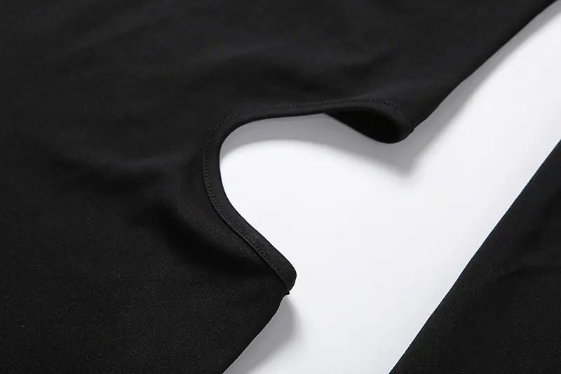 The bodysuit is crafted with intricate stitching and hollow elements, offering a sophisticated look that flatters your figure. Available in classic black, it comes in three sizes (S, M, L) to ensure a perfect fit for everyone.