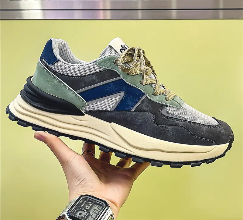 Step into the future of footwear with our Outdoor Running Sneakers. Designed with a unique blend of style and comfort, these sneakers are perfect for the modern man who values both aesthetics and performance. Featuring a low-top design, these shoes are crafted from artificial PU and lined with breathable mesh, ensuring your feet stay cool and comfortable, whether you're hitting the trails or strolling around town.