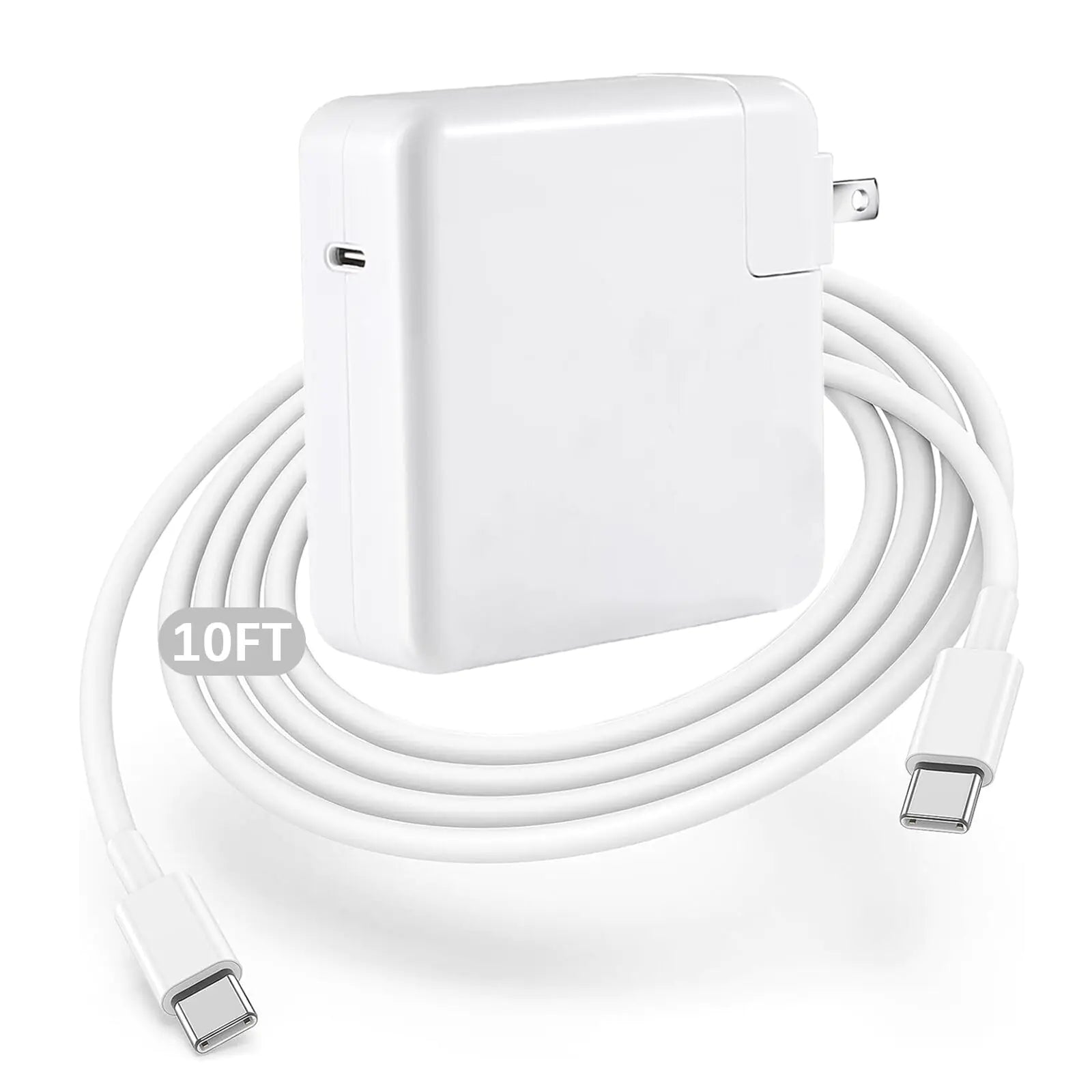 96W USB C Macbook Pro charger with 3M / 10FT 5A USB C to USB C Charger Cable Cord96W Fast Charging Laptop ChargerEquipped with "Power Delivery (USB PD) Protocol" intelligently output you. you can use this charger instead of 87W/61W/30W/29W adapter for lower wattage.Included a specialized 3M / 10FT 5A USB C to C cord to charge USB C MacBook at full speed 96W.These 96W USB C power adapters automatically for fast charging your MacBook Pro laptop iPad Pro android phones and more USB C & Type C port devices.One for All USB C DeviceCompatible with PD 20W 25W 29W 30W 61W 67W 87W 96W modelLaptops:For MacBook Pro 13-inch 2021 2019 2018 2017 2016 (A1706/ A1707/ A1708/ A1718)For MacBook Pro 14-inch M3 2023 M2 2022 M1 2021 2021(A2442)For MacBook Pro 15-inch 2021 2020 2018 2017 2016 (A1706/ A1707/ A1708/ A1719)For MacBook Pro 16-inch M3 2023 M2 2022 M1 2021 2021 2019(A2166)For MacBook Air 15 inch M3 2024 M2 2023 ( A2442 A2485 A2458 A2452 A2681 A2779 A2780)For MacBook Air 13 inch M3 2024 M2 2022 MacBook Air 13.3/13.6 Inch M2 2022 MacBook Air M1 2020 (A2337 A2179 A1932) MacBook Air Retina 13-inch 2020 2019 2018For MacBook Retina 12-inch Early 2017 2016 2015 (A1534/ A1540/ A1646)Tablets:For iPad Pro 12.9 2018/2020(3rd/4th generation)For iPad Pro 11 2018/2020(1st/2nd generaion)For iPad Pro 10.5/ ipad 10.2-inch (2019-2020)For iPad mini 5 7.9-inch (2019) Nintendo Switch and more.And for all usb c port smartphone laptop tablet and devices